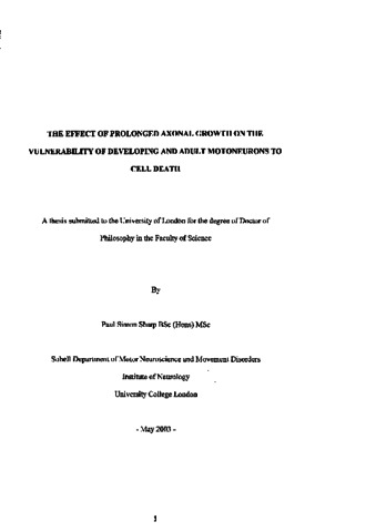 Title: | The effect of prolonged axonal growth on the vulnerability of developing and adult motoneurons to cell death |