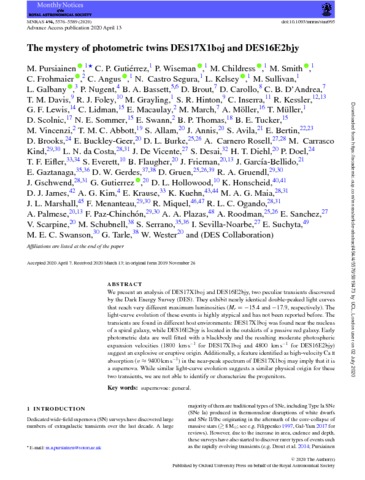We present an analysis of DES17X1boj and DES16E2bjy, two peculiar transients discovered by the Dark Energy Survey (DES). They exhibit nearly identical double-peaked light curves that reach very different maximum luminosities (Mr = −15.4 and −17.9, respectively). The light-curve evolution of these events is highly atypical and has not been reported before. The transients are found in different host environments: DES17X1boj was found near the nucleus of a spiral galaxy, while DES16E2bjy is located in the outskirts of a passive red galaxy. Early photometric data are well fitted with a blackbody and the resulting moderate photospheric expansion velocities (1800 km s−1 for DES17X1boj and 4800 km s−1 for DES16E2bjy) suggest an explosive or eruptive origin. Additionally, a feature identified as high-velocity Ca II absorption (v ≈ 9400 km s−1) in the near-peak spectrum of DES17X1boj may imply that it is a supernova. While similar light-curve evolution suggests a similar physical origin for these two transients, we are not able to identify or characterize the progenitors.