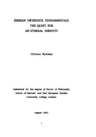| Title: | Serbian Orthodox fundamentals: The quest for an eternal identity. |