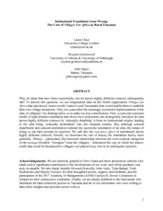 Title: | Institutional Translation Gone Wrong: The Case of Villages For Africa in Rural Tanzania |