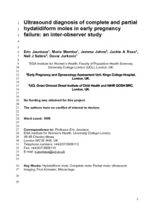 Ultrasound diagnosis of complete and partial hydatidiform moles in early pregnancy failure: An inter-observer study.