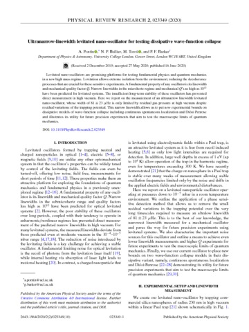 Title: | An ultra-narrow line width levitated nano-oscillator for testing dissipative wavefunction collapse |