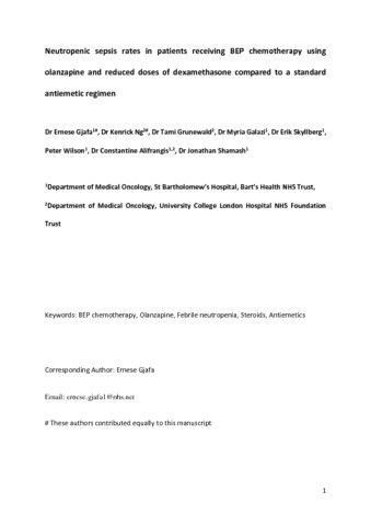 Title: | Neutropenic sepsis rates in patients receiving BEP chemotherapy using olanzapine and reduced doses of dexamethasone compared to a standard antiemetic regimen |