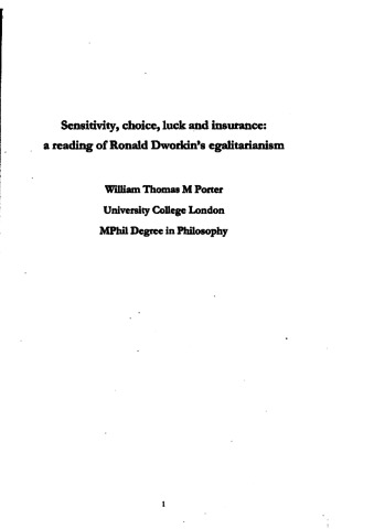 Title: | Sensitivity, choice, luck and insurance: A reading of Ronald Dworkin's egalitarianism |