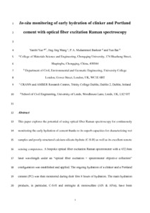| Title: | In-situ monitoring of early hydration of clinker and Portland cement with optical fiber excitation Raman spectroscopy |