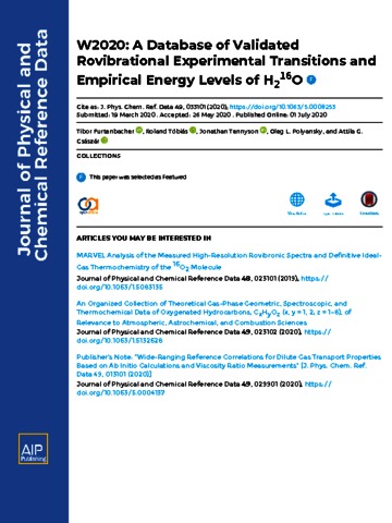 Title: | W2020: A Database of Validated Rovibrational Experimental Transitions and Empirical Energy Levels of H₂¹⁶O |