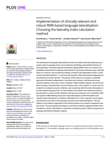 Title: | Implementation of clinically relevant and robust fMRI-based language lateralization: Choosing the laterality index calculation method |