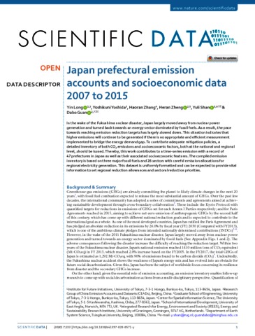 Japan prefectural emission accounts and socioeconomic data 2007 to 2015.