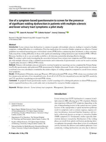 Title: | Use of a symptom-based questionnaire to screen for the presence of significant voiding dysfunction in patients with multiple sclerosis and lower urinary tract symptoms: a pilot study |