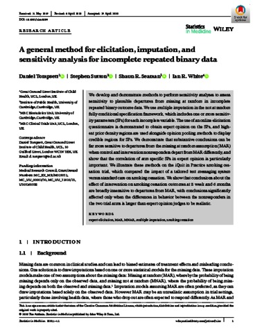 A general method for elicitation, imputation, and sensitivity analysis for incomplete repeated binary data.