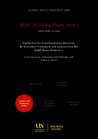 Title: | Capabilities for Transdisciplinary Research. An Evaluation Framework and Lessons from the ESRC Nexus Network + |