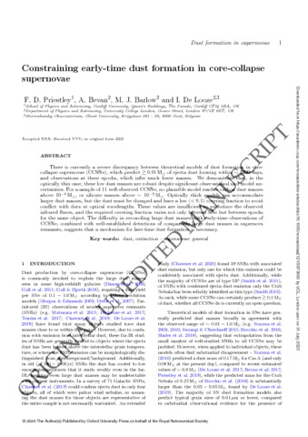 Title: | Constraining early-time dust formation in core-collapse supernovae |