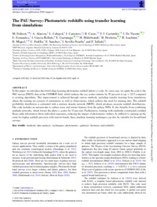 Title: | The PAU Survey: Photometric redshifts using transfer learning from simulations |