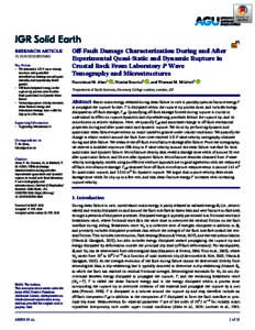 Off-Fault Damage Characterization During and After Experimental Quasi-Static and Dynamic Rupture in Crustal Rock From Laboratory P Wave Tomography and Microstructures.