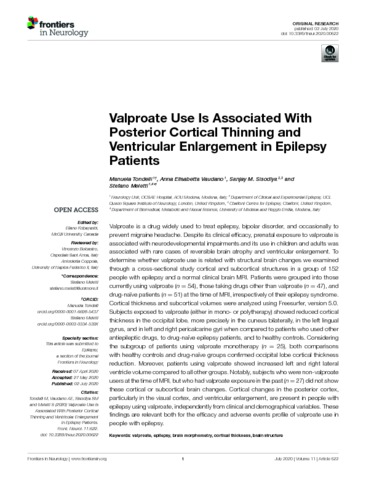 Title: | Valproate Use Is Associated With Posterior Cortical Thinning and Ventricular Enlargement in Epilepsy Patients |