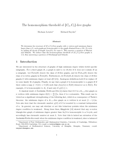 | Title: | The homomorphism threshold of {C₃,C₅}-free graphs |