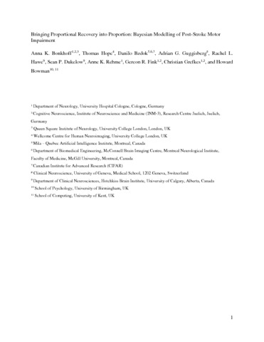 Keywords: | Motor outcome post-stroke, Proportional recovery, Bayesian hierarchical models, Bayesian model comparison, learning from data |