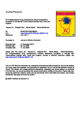 Title: | Do multigenerational living arrangements influence depressive symptoms in mid-late life? Cross-national findings from China and England |