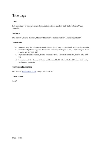 Title: | Life expectancy of people who are dependent on opioids: a cohort study in New South Wales, Australia |
