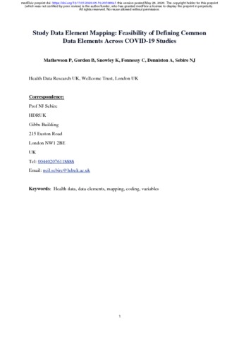 | Title: | Study Data Element Mapping: Feasibility of Defining Common Data Elements Across COVID-19 Studies |