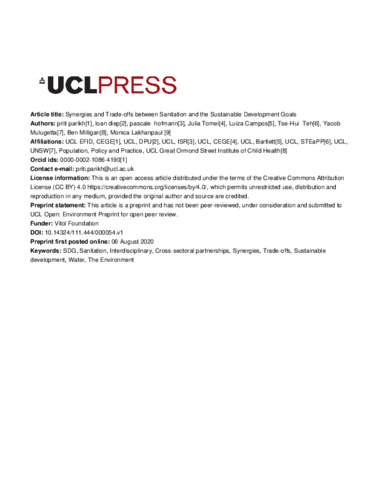 Title: | Synergies and Trade-offs between Sanitation and the Sustainable Development Goals |