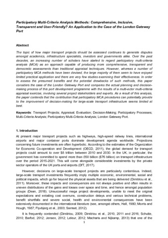 Title: | Participatory multi-criteria analysis methods: Comprehensive, inclusive, transparent and user-friendly? An application to the case of the London Gateway Port |