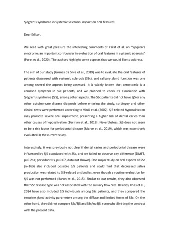 Title: | Sjögren's syndrome in systemic sclerosis: Impact on oral features |