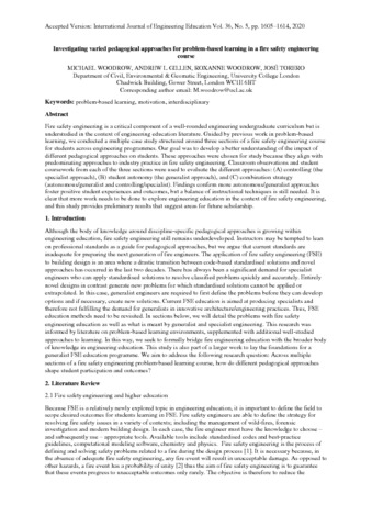 Title: | Investigating Varied Pedagogical Approaches for Problem-Based Learning in a Fire Safety Engineering Course |