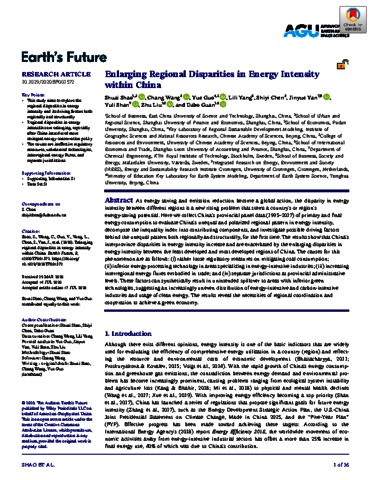 Title: | Enlarging Regional Disparities in Energy Intensity within China |
