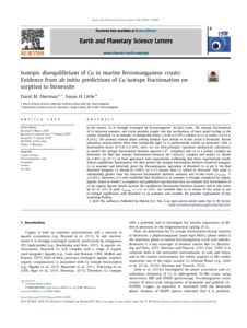Isotopic disequilibrium of Cu in marine ferromanganese crusts: Evidence from ab initio predictions of Cu isotope fractionation on sorption to birnessite.