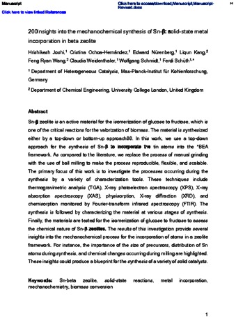 Title: | Insights into the mechanochemical synthesis of Sn-β: Solid-state metal incorporation in beta zeolite |