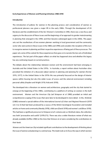 Morphet_Early Experiences of Women and Planning Initiatives 1980-1990_AAM.pdf - Accepted Version Download (268kB) | Preview |