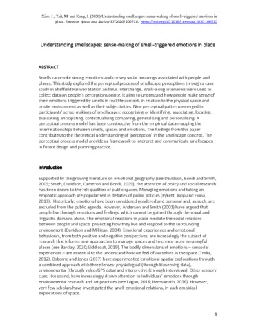 Title: | Understanding smellscapes: Sense-making of smell-triggered emotions in place |