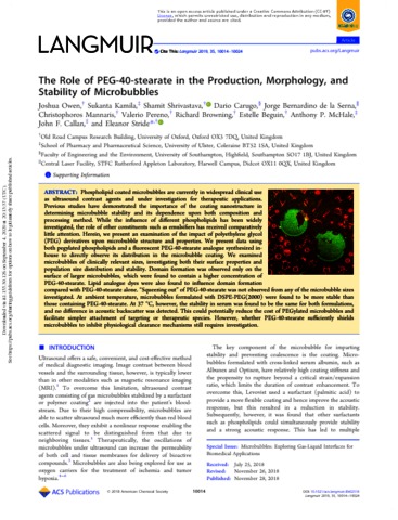 Title: | The Role of PEG-40-stearate in the Production, Morphology, and Stability of Microbubbles |
