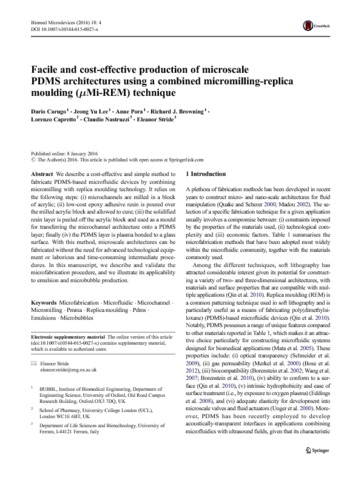 Title: | Facile and cost-effective production of microscale PDMS architectures using a combined micromilling-replica moulding (mu Mi-REM) technique |