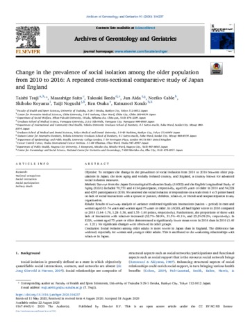 Title: | Change in the prevalence of social isolation among the older population from 2010 to 2016: A repeated cross-sectional comparative study of Japan and England |