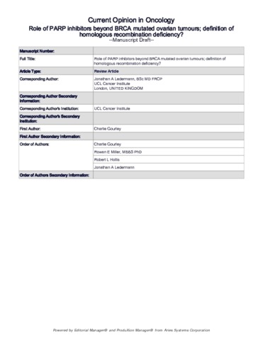Title: | Role of Poly (ADP-Ribose) Polymerase inhibitors beyond BReast CAncer Gene-mutated ovarian tumours: definition of homologous recombination deficiency? |