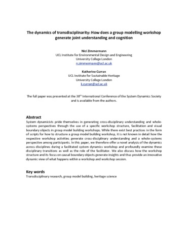 Zimmermann, Curran (2020) The dynamics of transdisciplinarity - extended abstract.pdf - Published Version Download (204kB) | Preview |