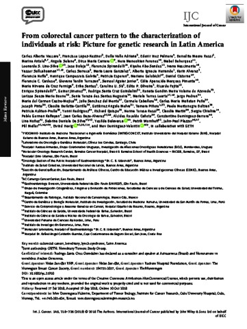 | Title: | From colorectal cancer pattern to the characterization of individuals at risk: Picture for genetic research in Latin America |