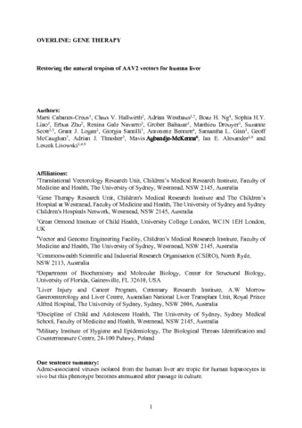 Title: | Restoring the natural tropism of AAV2 vectors for human liver |