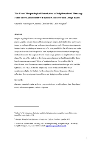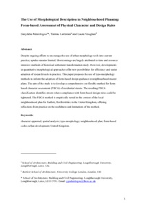 Title: | The use of morphological description in neighbourhood planning: form-based assessment of physical character and design rules |