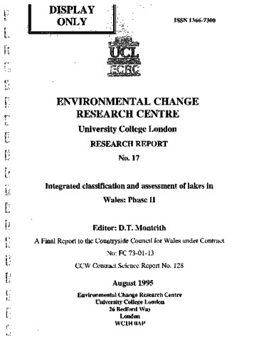 | Title: | Integrated classification and assessment of lakes in Wales: Phase II |