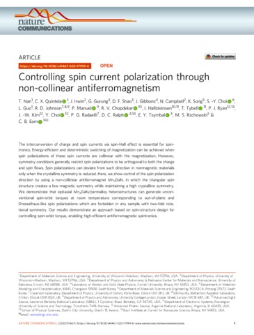 Controlling spin current polarization through non-collinear antiferromagnetism.