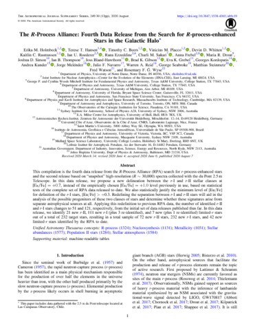 | Keywords: | Science & Technology, Physical Sciences, Astronomy & Astrophysics, R-process, Nucleosynthesis, Metallicity, Stellar abundances, Population II stars, Stellar atmospheres, NEUTRON-CAPTURE ELEMENTS, RADIAL-VELOCITIES, SURVEY HERES, EVOLUTION, NUCLEOSYNTHESIS, IDENTIFICATION, DISCOVERY, GALAXIES, MODELS, II. |