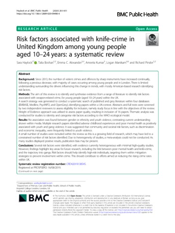Risk factors associated with knife-crime in United Kingdom among young people aged 10-24 years: a systematic review.