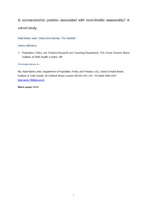 Lewis_Is socioeconomic position associated with bronchiolitis seasonality? A cohort study_AAM.pdf - Accepted Version Download (465kB) | Preview |