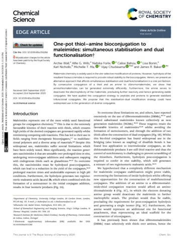 | Title: | One-pot thiol–amine bioconjugation to maleimides: simultaneous stabilisation and dual functionalisation |