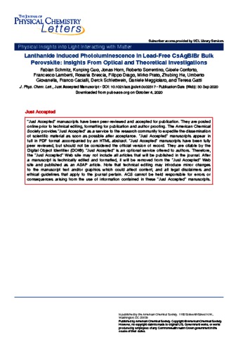 | Title: | Lanthanide Induced Photoluminescence in Lead-Free Cs₂AgBiBr₆ Bulk Perovskite: Insights From Optical and Theoretical Investigations |