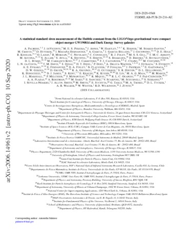 A Statistical Standard Siren Measurement of the Hubble Constant from the LIGO/Virgo Gravitational Wave Compact Object Merger GW190814 and Dark Energy Survey Galaxies.