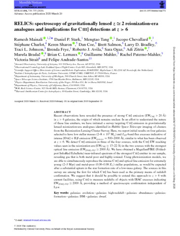 Title: | RELICS: spectroscopy of gravitationally lensed z ≃ 2 reionization-era analogues and implications for C III] detections at z > 6 |